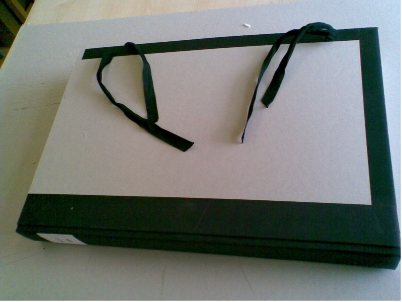mit Leder eingefasst und Schliessen angebracht.